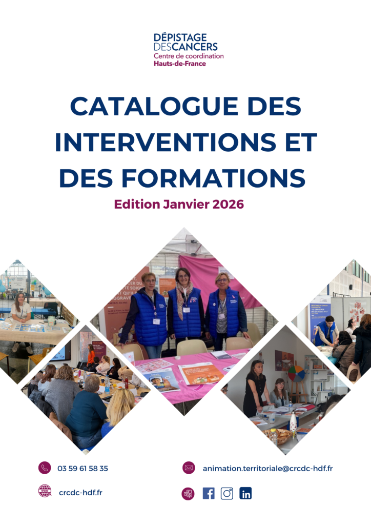 Dans le cadre de sa mission de promotion des programmes de dépistage organisé des cancers, le CRCDC Hauts-de-France met à disposition des structures partenaires un catalogue détaillé des interventions et formations proposées par ses équipes.